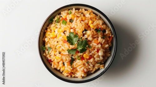 Japanese cuisine Corn rice served in a bowl on white backdrop