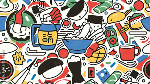 Japanese Food Doodle Background, this colorful background