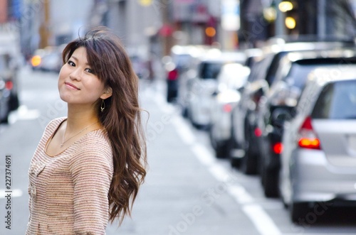 Japanese Girl poses on the street in Ginza, Japan. Ginza is a shopping city located in Tokyo.