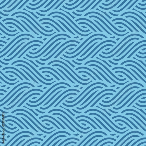 Japanese Sea Line Wave Vector Seamless Pattern