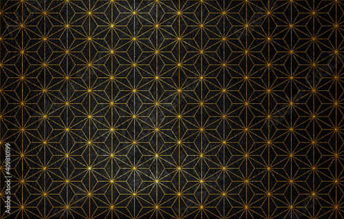 Japanese-style background material with a golden asanoha pattern on black Japanese paper