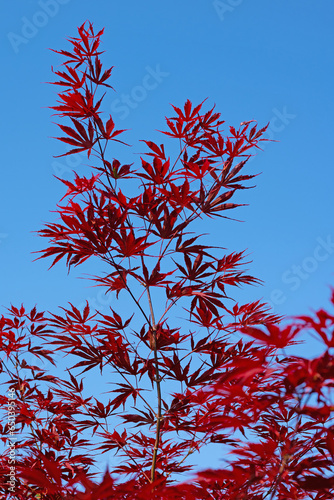Japanischer Fächerahorn, Acer palmatum, vor blauen Himmel