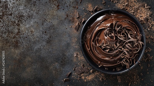 Jar of chocolate ganache with swirls of dark chocolate