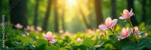 Jasmine flowers blooming in a sunlit forest glade, nature, flowers, forest
