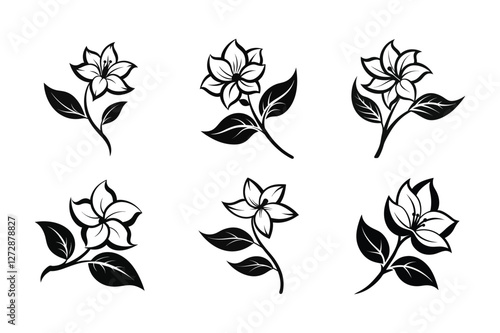 Jasmine (Jasminum spp.) silhouette vector illustration