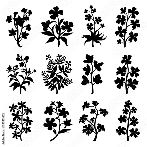 Jasmine Silhouette Vector Bundle Black and White Jasmine Clipart EPS Illustration