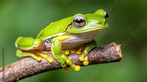Javan tree frog on sitting on branch, flying frog on branch, tree frog on branch