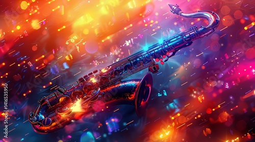 Jazz Music Background with Band Instruments for Concert, Piano Art, Abstract Jazz Saxophone Design.