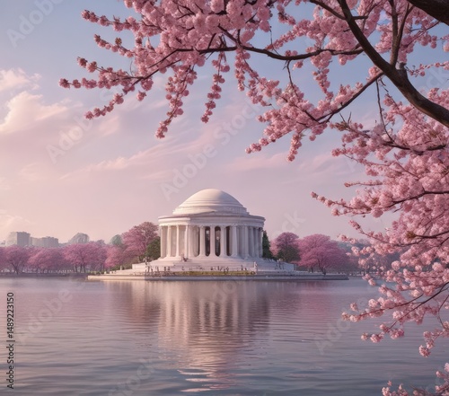 Jefferson Memorial, pink cherry blossoms, spring scene, holiday, celebration