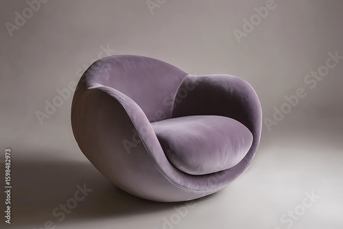 Jellybean-shaped accent chair in dusty lavender velvet, floating over shadowed soft grey background