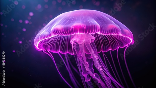 Jellyfish Under Purple Neon Light, bioluminescence, purple light, bioluminescence, purple light