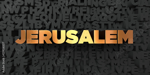 Jerusalem - Gold text on black background - 3D rendered royalty free stock picture. This image can be used for an online website banner ad or a print postcard.