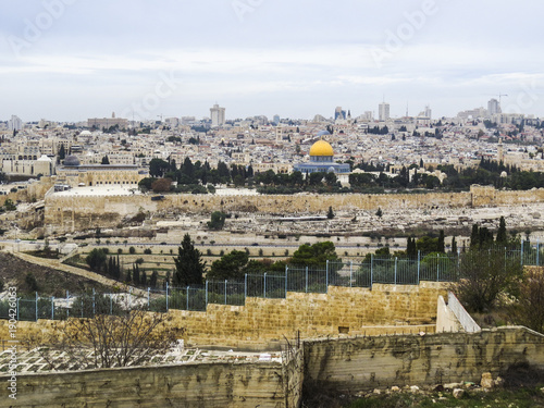 Jerusalem, Israel - view of The Old City of Jerusalem from the Mount of Olives