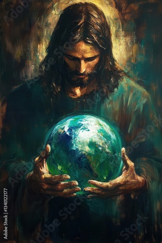 Jesus Christ Holding the Globe Symbolizing Divine Creation and Earth's Fragility