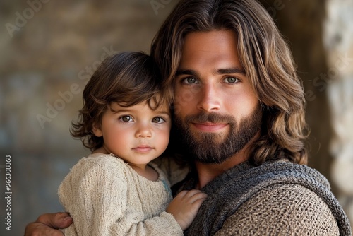 Jesus holding a child in His arms, reminding His followers of the importance of childlike faith and innocence