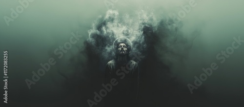 Jesus praying with uplifted eyes, surrounded by smoke and clouds.