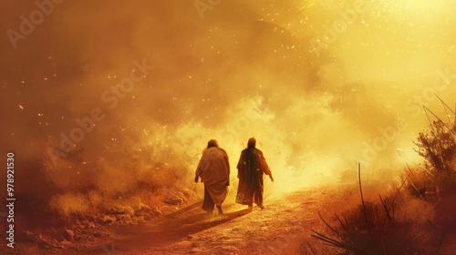 Jesus walks with two disciples on the road to Emmaus their hearts burning within them as he explains the Scriptures. Despite their confusion
