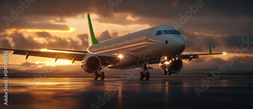 Jet Plane Taxiing on Runway at Sunset