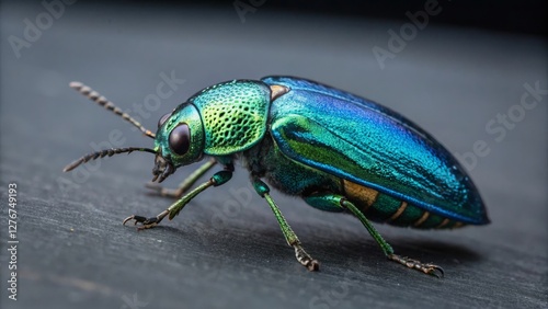 Jewel beetle glimmers under light dark background nature photography macro environment close-up view metallic beauty