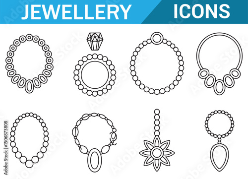 Jewelry Chain Icon Set, Elegant Necklace Illustrations in Black and White