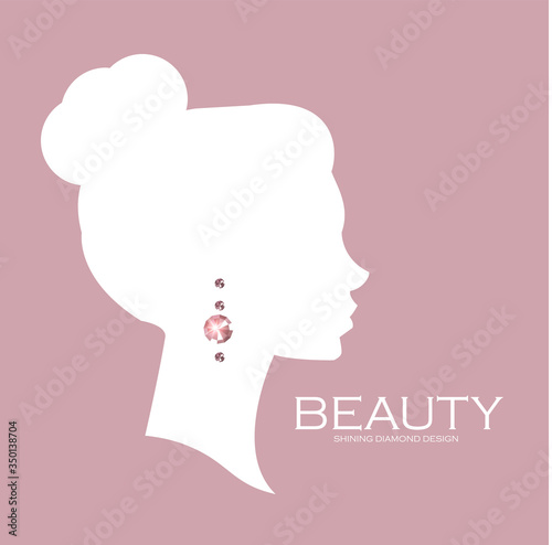Jewelry shop adverticing template.Female head silhouette with diamonds.