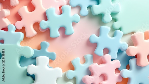Jigsaw puzzle connecting, cooperation and teamwork , partnership and brainstorming, 3d rendering.