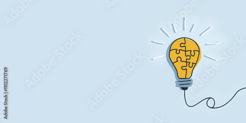 Jigsaw puzzle with a yellow light bulb - Flat lay