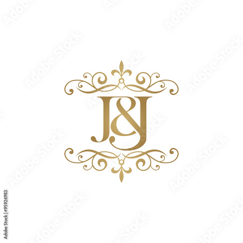 J&J Initial logo. Ornament ampersand monogram golden logo