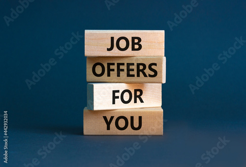 Job offers for you symbol. Concept words 'Job offers for you' on wooden blocks on a beautiful grey background. Businessman hand. Business, Job offers for you concept.