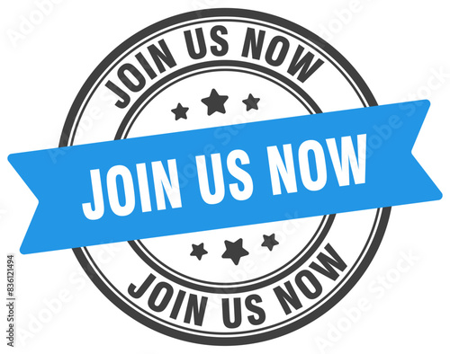 join us now stamp. join us now label on transparent background. round sign