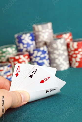 joueur dévoilant un carré d'as - poker