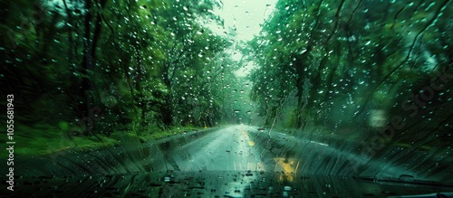 Journey Through The Raindrop Streaked Mirror A Fast Paced Road Trip Adventure On The Wet Green Countryside Highway