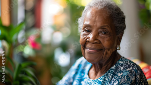 Joyful African American Senior at Nursing Home: Heartwarming Moments" "Smiling Elderly African American Resident at Nursing Home: A Picture of Happiness"