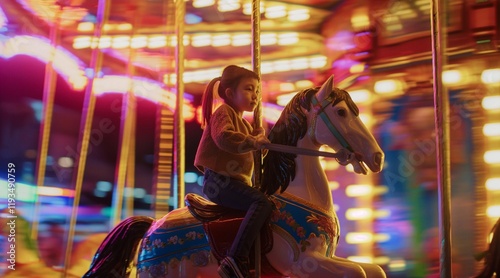 Joyful Child Riding a Carousel Horse on Children's Day Celebration