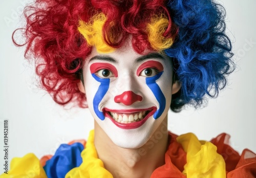 Joyful clown performance at a children's party colorful costume indoor celebration close-up fun atmosphere