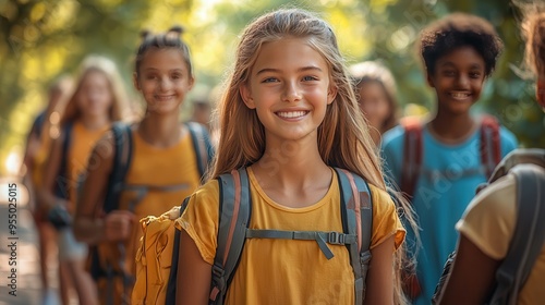 Joyful Friends Walking to School Together, Sharing Laughter and Stories on the Way