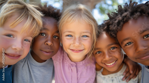 Joyful multiethnic children playing together in a sunny park