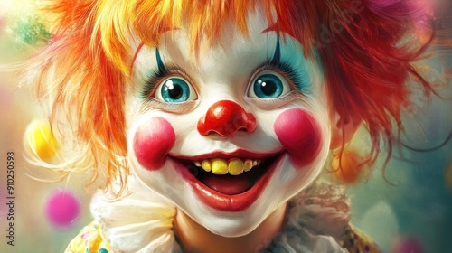 Joyful performer: cute children clown, young audiences with cheerful acts, balloon animals, playful tricks, happiness and excitement at parties and celebrations