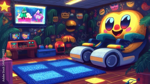 Joyful Pixel Art Child's Room with Video Game Character Chair