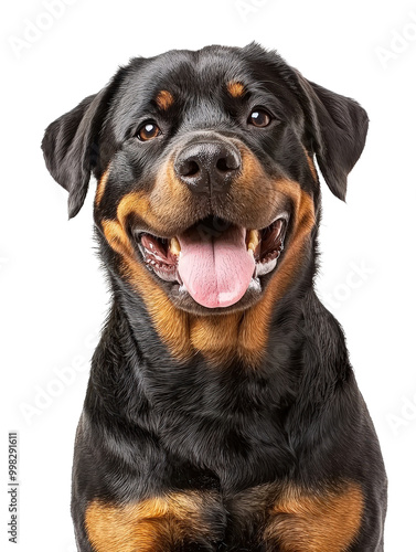 Joyful Rottweiler Dog Smiling on Isolated Background
