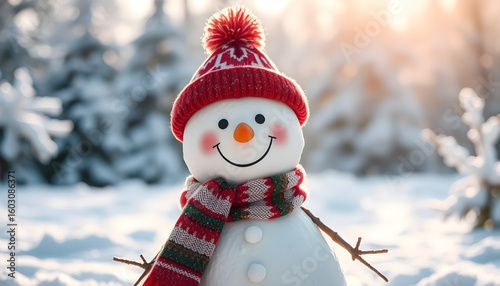 Joyful snowman in winter wonderland captivating snowy landscape cheerful scene close-up view