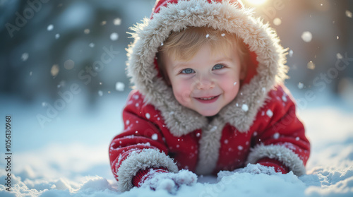Joyful Winter Fun: Kid Playing in Snow - Adorable Children Enjoying Snowy Adventure in Cozy Winter Clothes