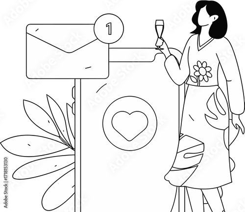 Joyful woman celebrating a successful connection with a champagne toast, representing engagement and positive notifications in digital communication and social media.