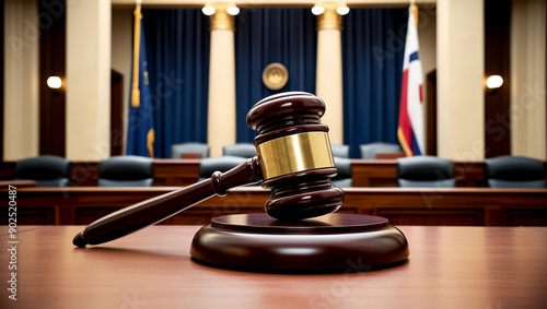 Judge gavel in court house, Law and crime concept, Judge gavel with defocused court room