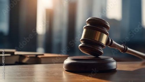 Judge gavel on background of a blurred private building. The concept of land, construction, bankruptcy law and business purchase.