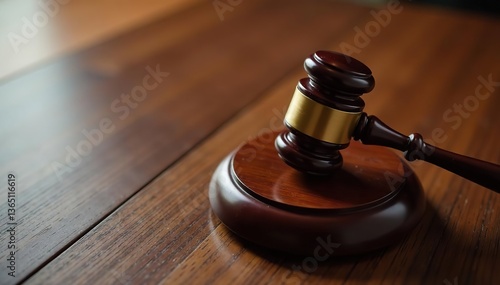 Judge gavel resting on a polished brown wooden background, judgment, brown