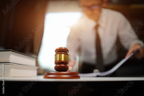 Judge gavel with Justice lawyers having team Concepts of Law and Legal services