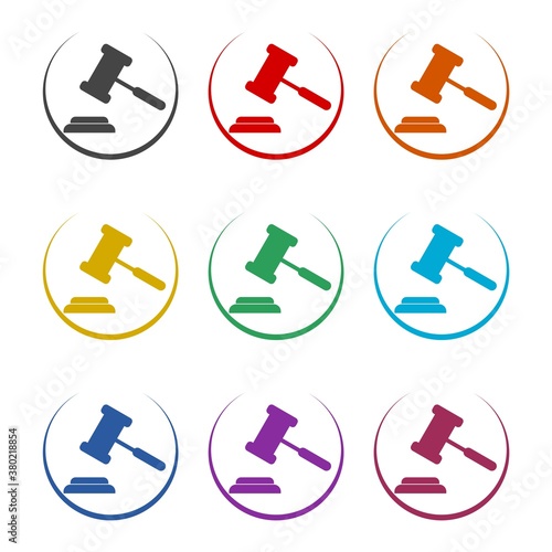 Judge or auction gavel icon, color set