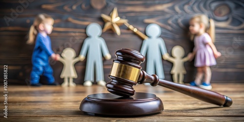 Judge's Gavel and Family Figures Child Custody Concept, Family Law, Wooden Background Family Law, Child Custody