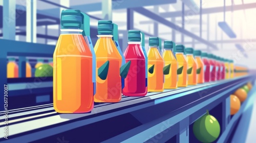 Juice Bottles On Conveyor Belt - Cartoon Style
